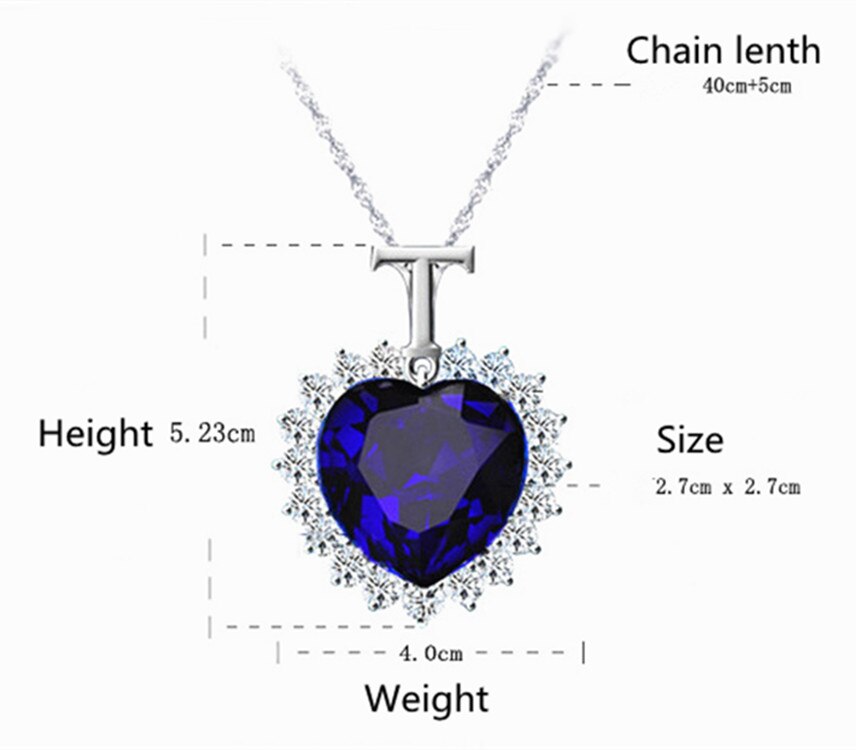 A world famous jewel. It highlights the replica of the blue diamond: "The heart of the ocean". A must for all fans of the TITANIC movie and fashion.